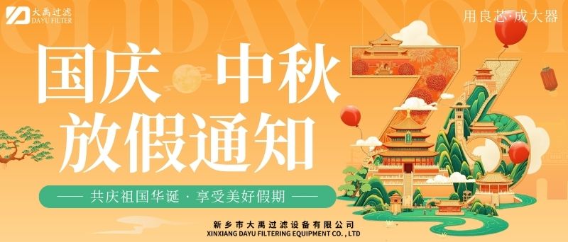 尊敬的客戶及合作伙伴:秋風(fēng)送爽,丹桂飄香。值此國慶與中秋雙節(jié)來臨之際,謹(jǐn)向您及家人致以zui誠摯的節(jié)日祝福!根據(jù)國家法定節(jié)假日安排,結(jié)合公司實際情況,現(xiàn)將2025年國慶+中秋雙節(jié)放假安排及相關(guān)事項通知如下:一、放假時間2025年10月1日(星期三)至10月6日(星期一),共計6天。10月7日(星期二)起正常上班。9月28日(周日)、10月12日(周日)補班。二、業(yè)務(wù)服務(wù)說明放假期間,公司線上咨詢通道保持暢通。銷售人員將不定期查看并回復(fù)您的咨詢,但受假期影響,可能存在回復(fù)延遲的情況,敬請諒解。如遇緊急事項,您可撥打以下熱線:王經(jīng)理13613905650;李經(jīng)理13839073363,我們將竭誠為您服務(wù)。三、生產(chǎn)安排提醒因車間節(jié)前生產(chǎn)訂單已排滿,為確保假期前后生產(chǎn)質(zhì)量與效率,放假期間(10月1日至10月6日)將暫停安排新生產(chǎn)訂單生產(chǎn)。節(jié)前已下單的訂單將按原計劃正常推進,放假期間新接訂單將統(tǒng)一順延至10月7日復(fù)工后,按序安排生產(chǎn)。由此帶來的不便,我們深表歉意,感謝您的理解與支持。四、溫馨提示假期出行請注意安全,做好個人防護。公司官網(wǎng)及社交媒體平臺將持續(xù)更新節(jié)日動態(tài)及服務(wù)資訊,歡迎隨時關(guān)注。佳節(jié)共團圓,服務(wù)不間斷。值此雙節(jié)同慶的美好時刻,衷心感謝您長期以來對我司的信任與支持!我們期待在節(jié)后以更飽滿的熱情、更優(yōu).質(zhì)的服務(wù)與您攜手同行,共啟新程!此致敬禮!新鄉(xiāng)市大禹過濾設(shè)備有限公司2025年9月28日
